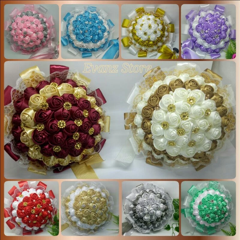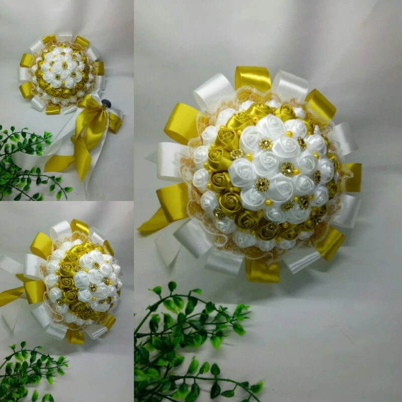 Hand Buket Pita Satin Pengantin Bucket Bunga Pengantin – Bouquet – Wisuda